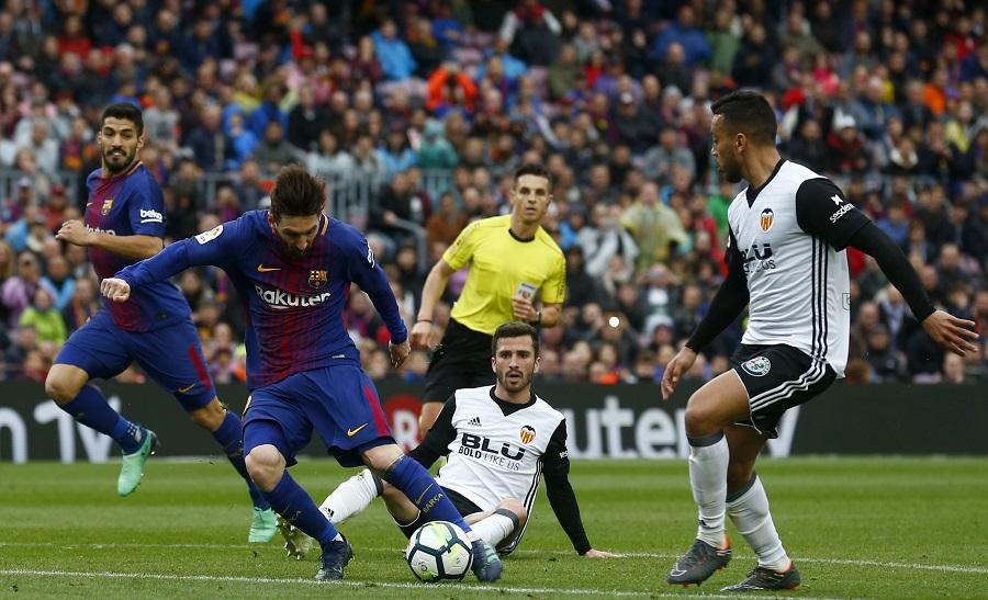 El Barcelona fijó un récord de 39 partidos consecutivos sin perder en la Liga Española al vencer 2-1 al Valencia, recuperándose de su humillante eliminación de la Liga de Campeones para dar otro paso por la conquista del título doméstico.