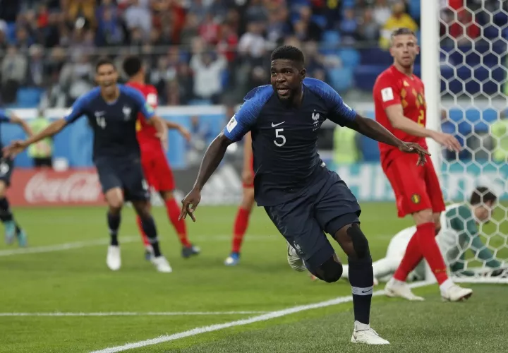 En un saque de esquina ejecutado por Antoine Griezmann a los 51 minutos, Umtiti consiguió anticiparse a Marouane Fellaini, custodio del primer palo. El zaguero del Barcelona saltó y le remató en las narices al arquero Thibaut Courtois, quien simplemente levantó las manos en un intento infructuoso por impedir que el balón entrara a las redes.