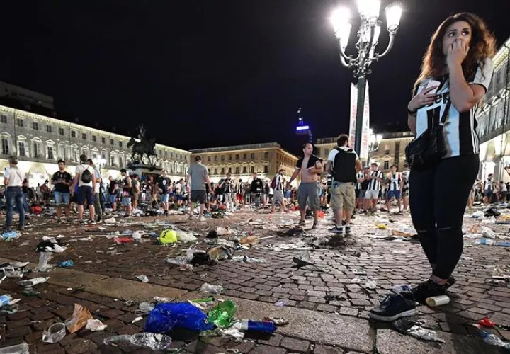 Cinco personas han resultados heridas gravemente y unos 400 sufrieron lesiones leves este sábado como consecuencia de una estampida, provocada por una falsa alarma, que sembró el pánico en Turín, donde estaban reunidos los hinchas del Juventus para ver la final de la Liga de Campeones.