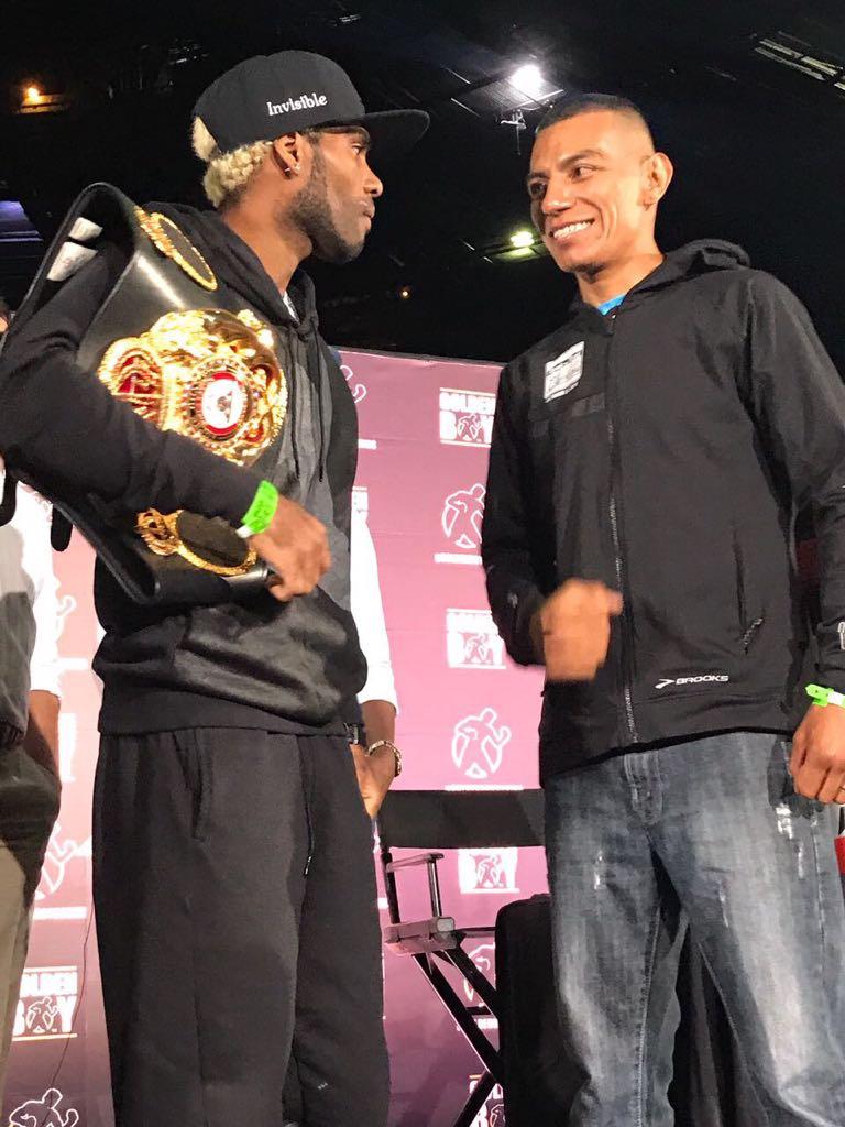 Durante el encuentro con los medios de comunicación, Corrales tuvo la oportunidad de ver en persona a su rival y posar en la tradicional foto “frente a frente”.