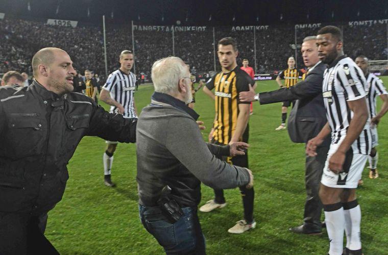 El más relevante se produjo en el partido que disputaban PAOK y AEK, en el que el presidente del primer equipo, Ivan Savvidis, irrumpió en el campo con una pistola al cinto y profirió amenazas de muerte contra el árbitro.