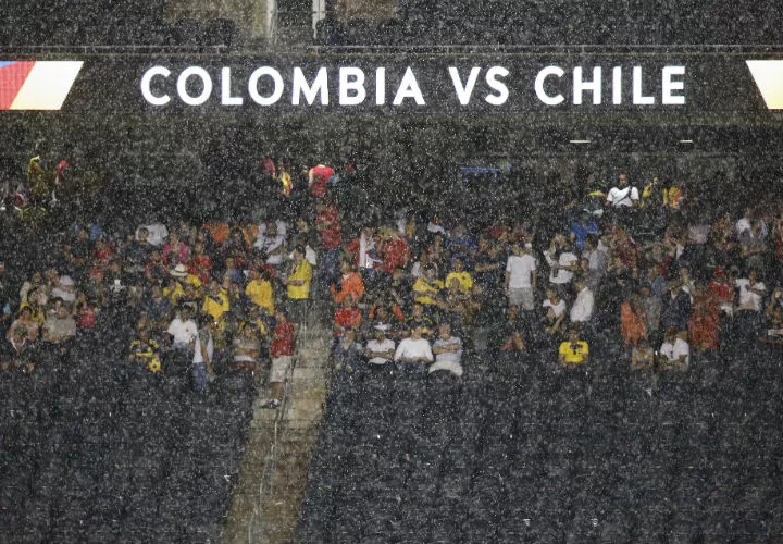 El partido quedó suspendido en el descanso, cuando Chile ganaba 0-2 al equipo colombiano. El público que casi abarrotó el campo recibió por megafonía instrucciones de refugiarse en las partes cubiertas, a la espera de que pasase la tormenta.