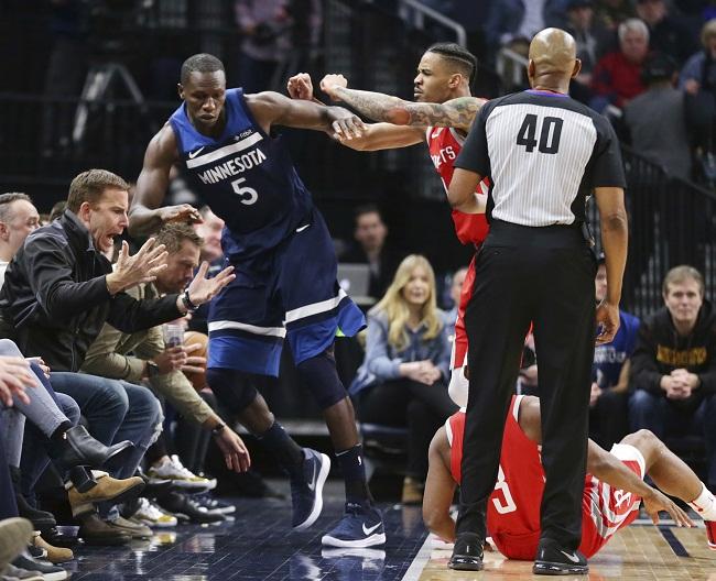 Dieng había empujado al base de los Rockets, Chris Paul, mientras ambos luchaban por un balón, acción a la que respondió Green con un empujón violento que mandó al jugador reserva de los Timberwolves contra la primera fila de espectadores que se encontraban viendo el partido.