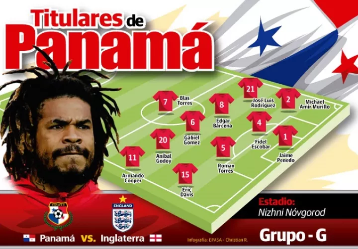 Por tanto, el once de Panamá que saldrá al campo para enfrentarse a Inglaterra será el formado por: Jaime Penedo; Michael Murillo, Román Torres, Fidel Escobar, Eric Davis; Gabriel Gómez; Aníbal Godoy, Armando Cooper, Edgar Bárcenas, José Luis Rodríguez; y Blas Pérez.