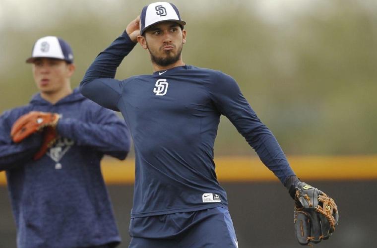 Luego de esa campaña pasó en un cambio a las granjas de los Padres y en ese 2016 jugó Clase A Fuerte, nivel en el que inició el 2017 y después lo subieron a Doble A.