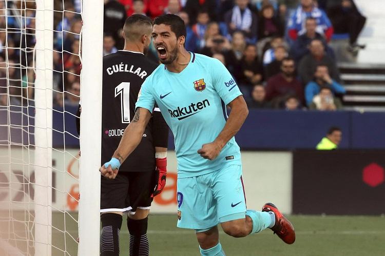 El delantero uruguayo del Barcelona Luis Suárez se reencontró con el gol 35 días después y firmó un doblete ante el Leganés en una jornada en la que no marcó su compañero argentino Leo Messi, que se mantiene con comodidad en el liderato de la clasificación de goleadores.