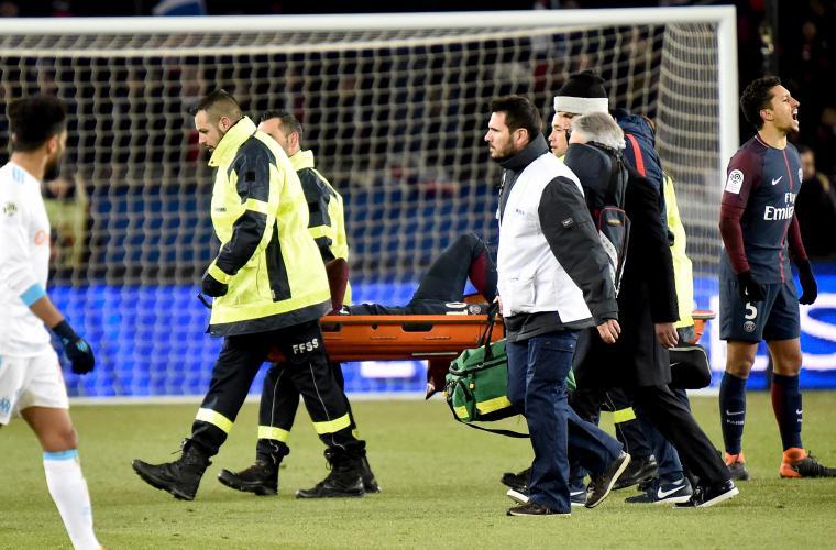 Neymar tuvo que ser sacado en camilla tras torcerse el tobillo derecho en el partido del líder París Saint-Germain ante Marsella, en la liga francesa, ayer domingo.