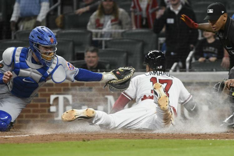 El panameño Johan Camargo conectó un triple para llevar la carrera del empate al plato y anotó en un sencillo dentro del cuadro de Ender Inciarte con toque de pelota, para que los Bravos de Atlanta remontaran y vencieran el sábado en la noche 4-3 a los Mets de Nueva York.