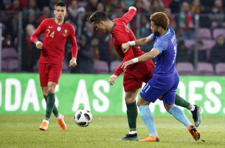 Cristiano Ronaldo lució muy poco ante la marca del defensor holandés Tonny Vilhena, quien le hizo una dura entrada en el comienzo del duelo. El atacante portugués fue reemplazado a los 68 minutos tras la expulsión de su compañero Joao Cancelo.