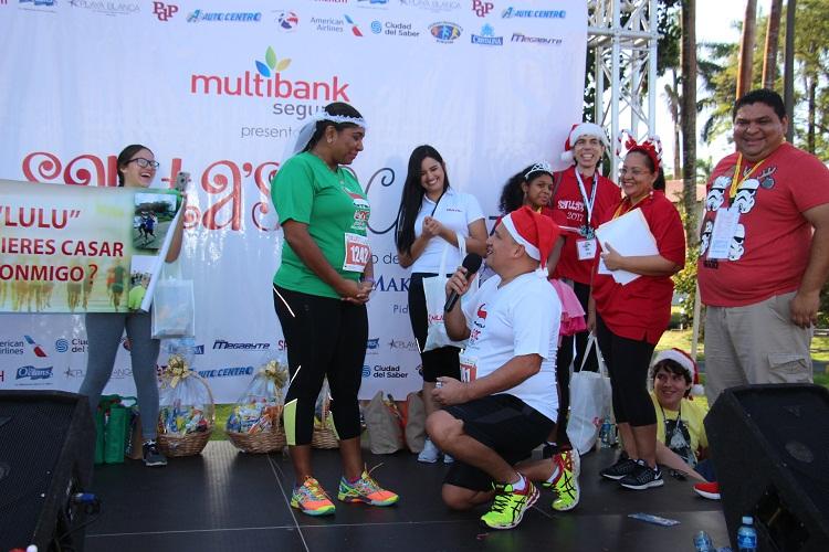 Tremenda sorpresa de Navidad la que se llevó ayer la colonense Lourdes Saavedra cuando después de participar de la sexta edición de la carrera -caminata Santa´s Race fue llamada a la tarima porque supuestamente había sido agraciada en la tómbola con un premio pero en lugar de recibir una canasta de comida con productos de la época, se encontró con que su novio Edgar Gonzalez, que había planeado todo desde semanas antes, subió tras ella y le pidió matrimonio ante todos los asistentes.