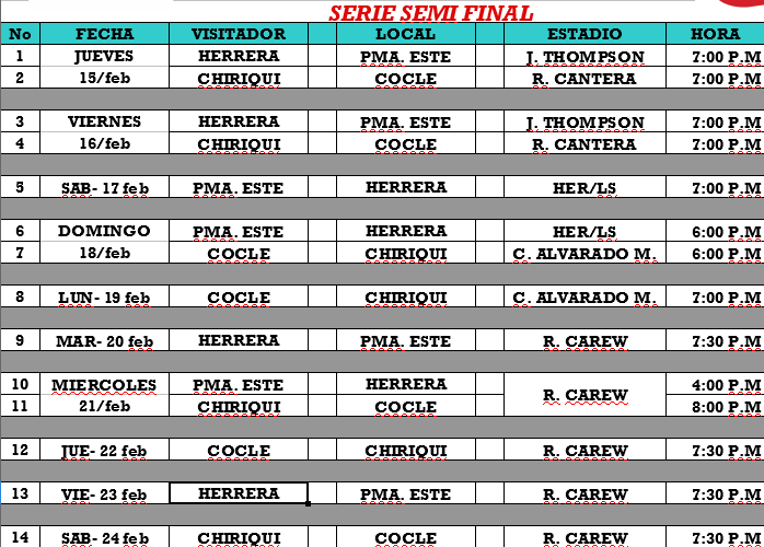 Ambas series están pactadas al mejor de siete encuentros y de ser necesarios, a partir del quinto encuentro se jugaría en el estadio nacional Rod Carew.
