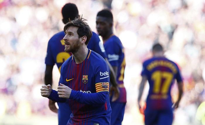 Sin el uruguayo Suárez debido a una sanción, Alcácer registró su tercer gol del campeonato a los ocho minutos, mientras que Messi celebró su 25ta diana a los 30 para ampliar su ventaja como máximo cañonero de la liga, que disputa su 29na fecha.