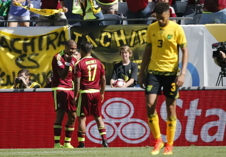 Venezuela se impuso a Jamaica por 0-1 en su debut en la Copa América tras un partido en el que marcó pronto y jugó con un hombre más tras la expulsión de un jugador rival a los 23 minutos de juego.