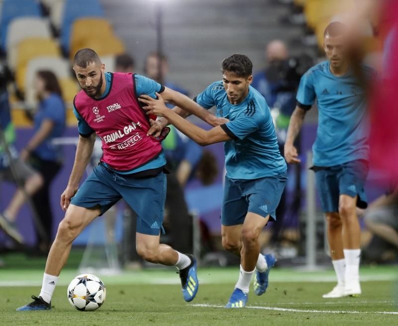 El último entrenamiento del Real Madrid antes de la final de la Liga de Campeones, abierto a los medios de comunicación en el Olímpico de Kiev, no sirvió para despejar la duda de si será titular Gareth Bale o Karim Benzema, ya que Zinedine Zidane juntó a ambos en uno de los equipos que formó.