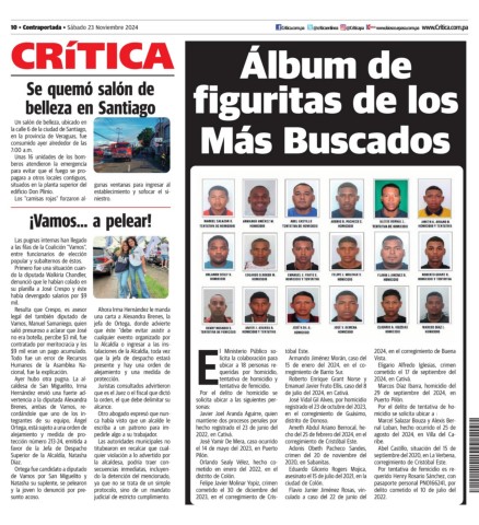 10 • Contraportada • Sábado 23 Noviembre 2024 Critica.com.pa @criticaenlinea @Criticapa www.kiosco.epasa.com.pa www.Crítica.com.pa