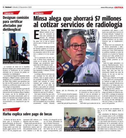 4 • Nacional • Sábado 23 Noviembre 2024 www.critica.com.pa • CRíTICA