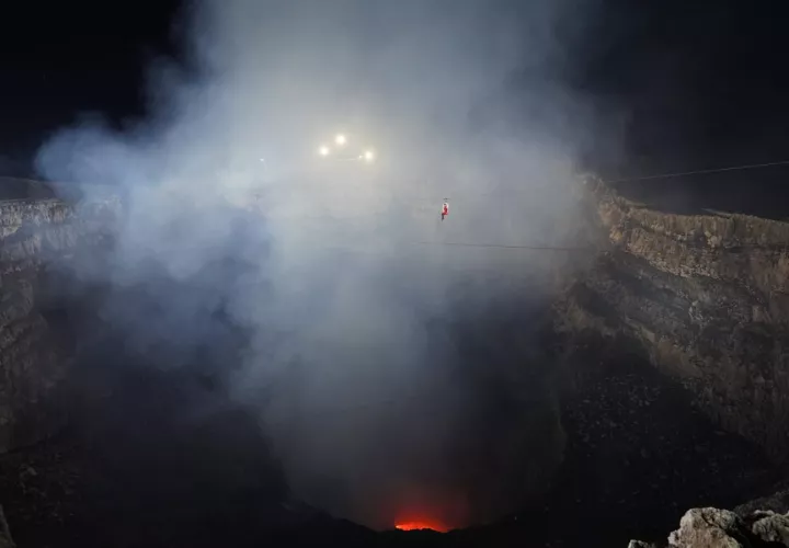 El estadounidense llevó consigo una máscara protectora y gafas para combatir las columnas de gas tóxico. El volcán Masaya emite más de 330.000 toneladas de dióxido de carbono cada año.