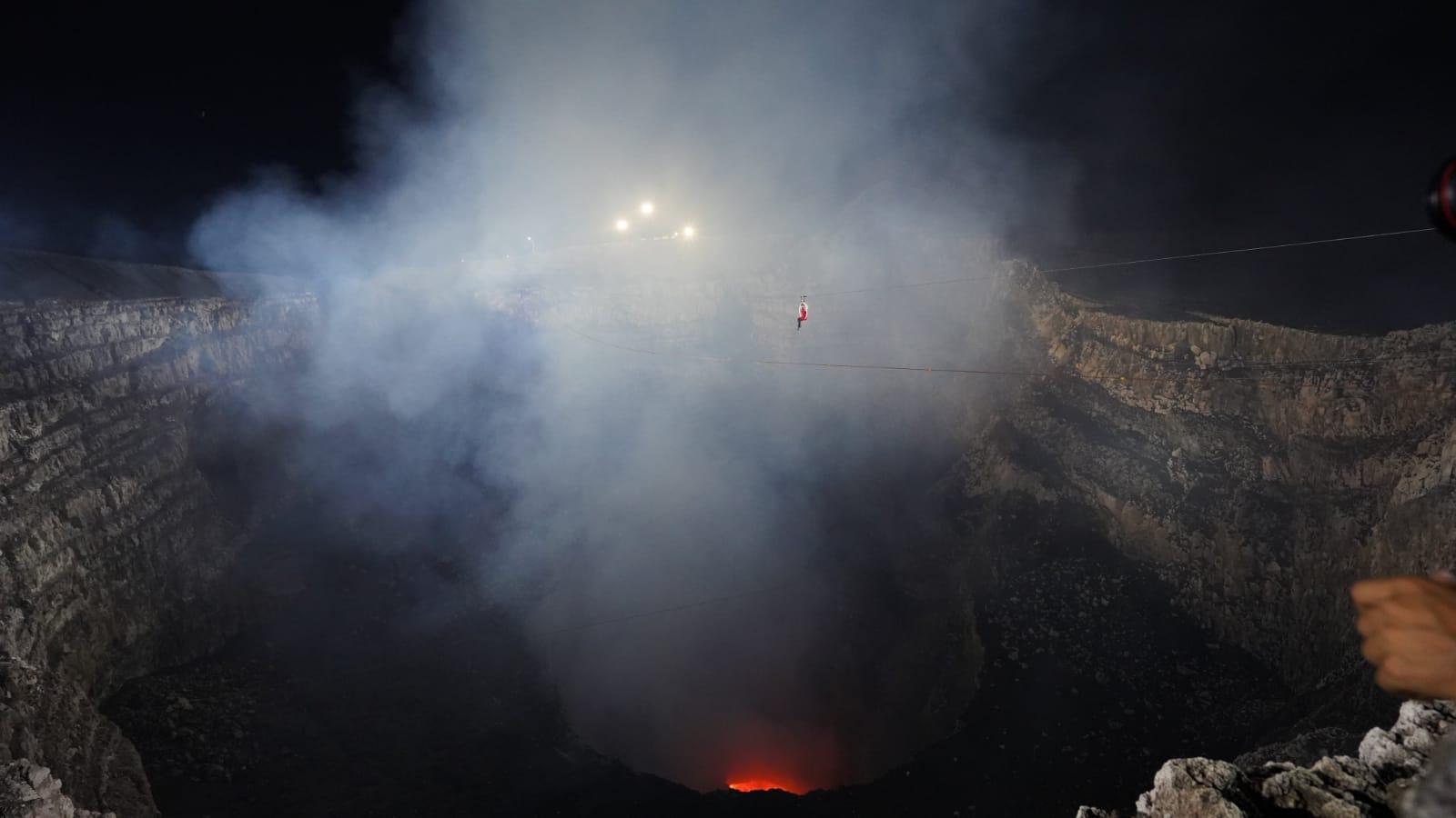 El acróbata estadounidense Nik Wallenda cruzó sobre una cuerda el estanque de lava del volcán Masaya, en Nicaragua, uno de los volcanes más activos del mundo.