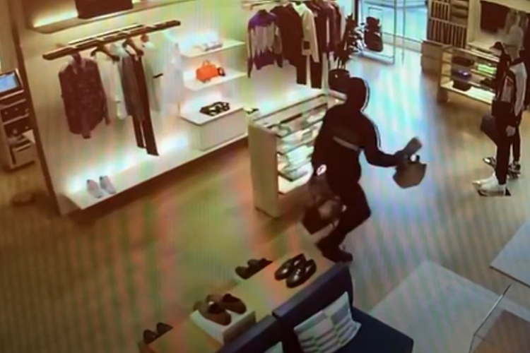 En la grabación, realizada por una cámara de seguridad del local, se observa como el ladrón con varios bolsos en las manos corre en busca de una salida y se lanza contra una ventana de cristal, tras lo cual queda tendido en el suelo. En ese momento un guardia lo inmoviliza.
