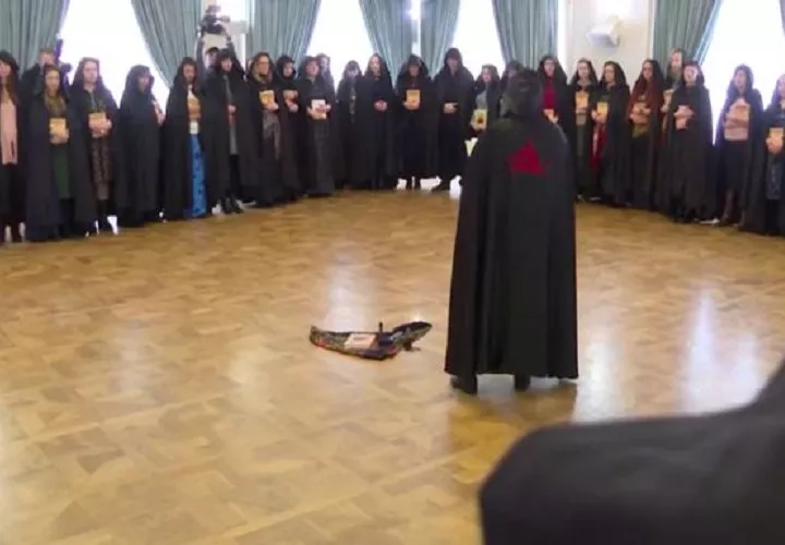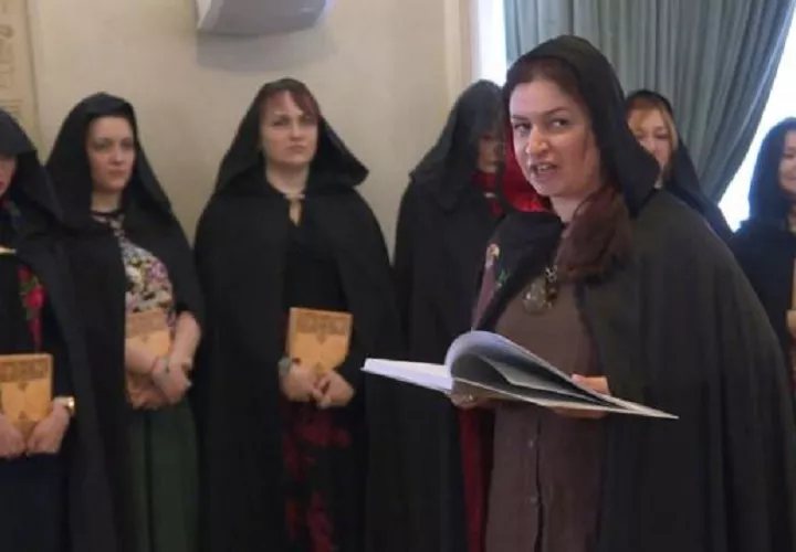 "Los que oyen, pero no oyen; los que ven, pero no ven; los que están ahí, estuvieron ahí y estarán ahí, no olvidarán mi palabra: elevar la fuerza de Rusia, dirigir a nuestro presidente Vladimir Putin por el camino de la justicia", fue la invocación con la que Alena Polyn, líder del autoproclamado "Imperio de las brujas más poderosas", comenzó este aquelarre, según informan varios medios locales. Brujas y videntes de Rusia hacen ‘círculo de poder’ para Putin