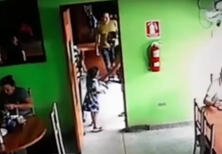 El las imágenes grabadas se aprecia como el asesino aparta de su camino a una pequeña niña, luego desenfunda el arma y dispara contra la víctima.