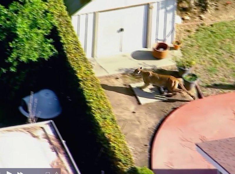 Un puma o león de montaña vagabundeó por los patios traseros de un vecindario a las afueras de Los Ángeles antes de que los oficiales de vida silvestre lo tranquilizaran.