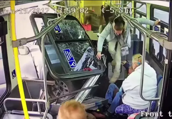 El 19 de enero, en la localidad estadounidense de Syracuse, en el estado de Nueva York, se produjo este espectacular accidente que afortunadamente no dejó víctimas mortales, cuyas imágene recién fueron difundidas. Al parecer el conductor de una furgoneta confundió el freno con el acelerador, y terminó colisionando un autobús, según dijo a la policía.