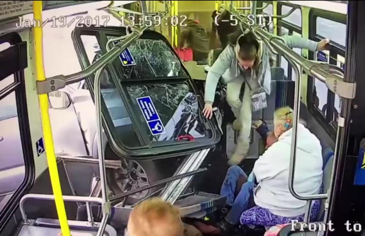 El 19 de enero, en la localidad estadounidense de Syracuse, en el estado de Nueva York, se produjo este espectacular accidente que afortunadamente no dejó víctimas mortales, cuyas imágene recién fueron difundidas. Al parecer el conductor de una furgoneta confundió el freno con el acelerador, y terminó colisionando un autobús, según dijo a la policía.