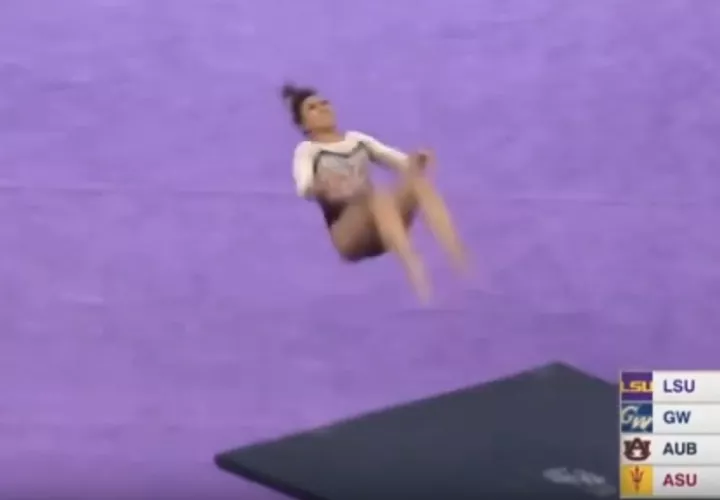 La estadounidense de la Universidad de Aurburn se dislocó las dos rodillas y se quebró la tibia y el peroné de ambas piernas en una desafortunada caída que conmocionó tanto a los espectadores como a los comentaristas del evento.