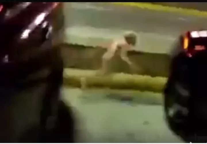 Las imágenes difundidas muestran un área parecida a la Cinta Costera, en la que el extraño ser, muy parecido a un humano, pero de estatura pequeña y sin ropa, se moviliza de un auto a otro hasta terminar bajo un vehículo.