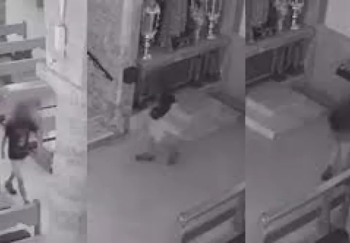 Una cámara captó el momento en que este sujeto ingresó al templo.