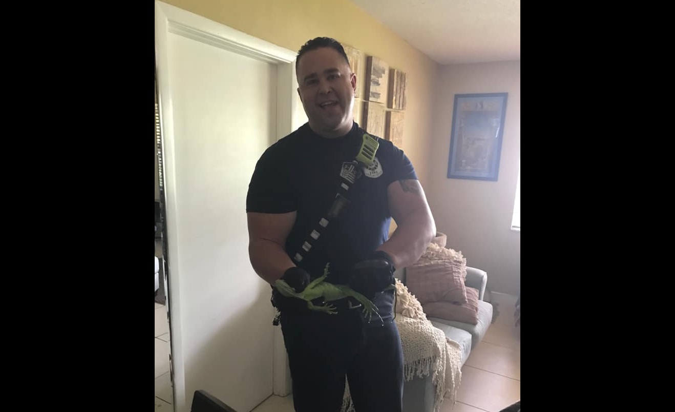 Dice que el bombero Jeff Kurus se puso un guante estéril, se acercó y agarró la iguana. La sacó afuera y la lanzó al medio silvestre.