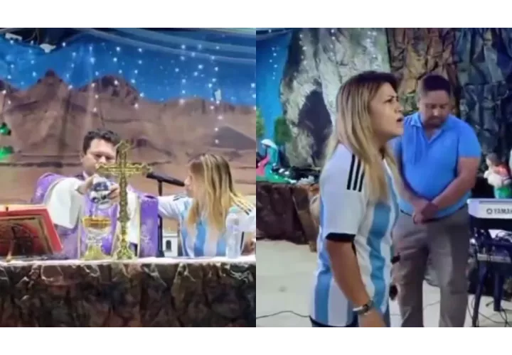 El incidente se registró en la Parroquia Santa Marta de la capital huilense, cuando en medio de la elevación del sacramento, un momento muy importante para la ceremonia católica, fue interrumpido por esta mujer que vestía una camiseta de la selección Argentina.