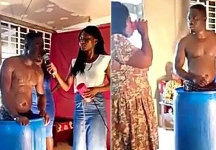 De acuerdo a medios locales en Ghana, se trata del líder de la iglesia "Endtime Church Of Nations". En el video, algunos fieles parecen negarse a tomar el "agua bendita", aunque luego terminan cediendo ante la insistencia del pastor.
