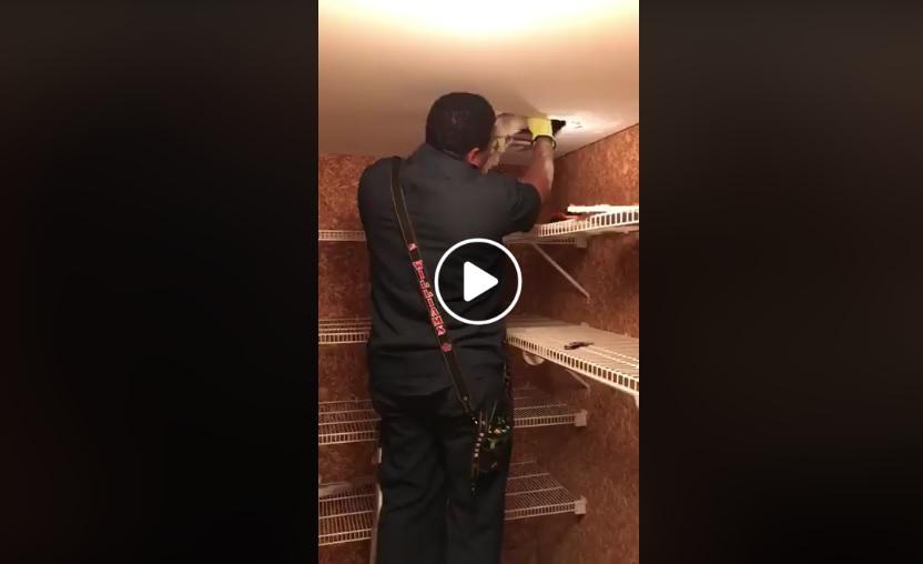 El video muestra al bombero Mark Williams haciendo un agujero en el techo del sótano para recuperar al perro.