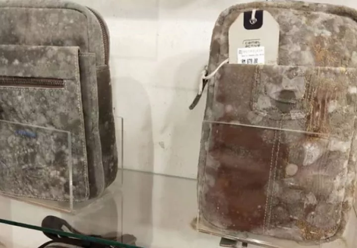 Varias tiendas de accesorios y prendas de cuero abrieron sus puertas hace poco, tras dos meses de confinamiento y descubrieron que todo su inventario se había llenado de moho.