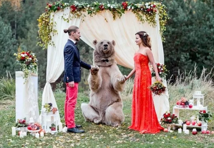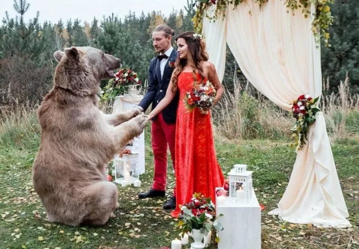 Un colosal oso de 133 kilos fue el único testigo elegido para la boda de una pareja de rusos.