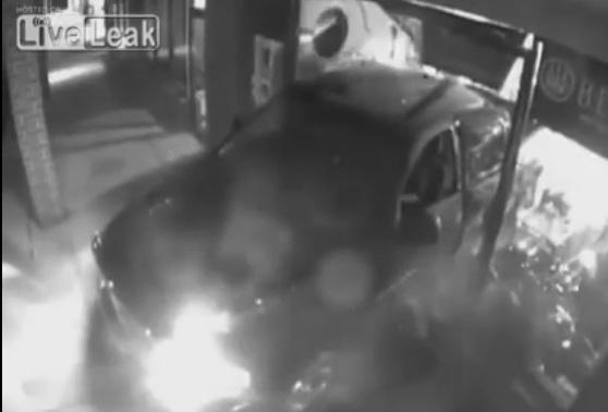 Una cámara de seguridad captó un individuo usando su carro para atravesar la entrada principal de una tienda de armas.