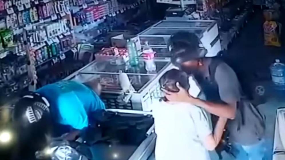 Hasta allí, nada muy diferente a tantos robos que registran las cámaras de seguridad casi todos los días. Lo sorprendente ocurrió cuando una mujer mayor, cliente del lugar, quiso darle su dinero a uno de los delincuentes. En ese instante el ladrón se negó a aceptarlo y le hizo movimientos con las manos para que se tranquilizara.