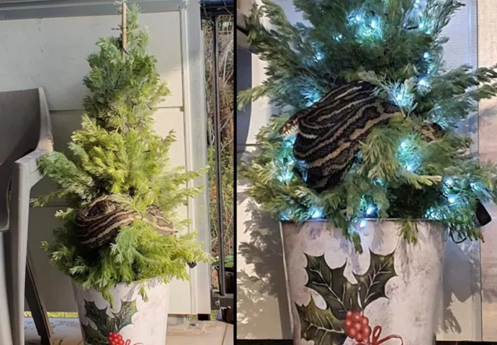 Una pareja llega a su casa y descubre una pitón en su árbol de Navidad