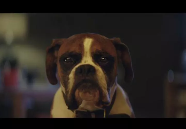 En el video se observa a “Buster”, un can de raza bóxer, que al ver el regalo que le hacen a su dueña, una pequeña niña, no puede evitar emocionarse.