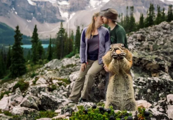 “De regreso vimos un buen lugar para tomarnos las fotos, una zona pedregosa. Cuando empezamos a prepararnos una ardilla apareció. Ella se pasaba recogiendo algunos frutos secos que los caminantes dejan por ahí”, dijo BDFK Photography a The Huffintongpost.