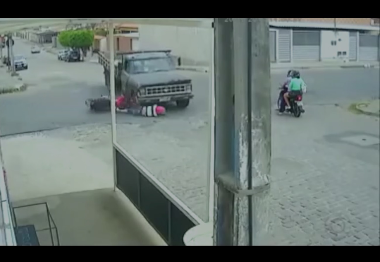 En las imágenes captadas en video se aprecia como el cuerpo del motorizado gira en torno a las ruedas frontales del camión y queda justo debajo del vehículo.