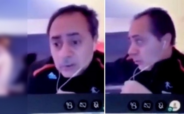 En el video se aprecia que una vez que el docente se da cuenta de lo que ocurre intenta, disimuladamente, de hacerle saber a su esposa la situación, pero para cuando lo logró ya era tarde, los estudiantes se habían percatado del incidente y captado la imagen.