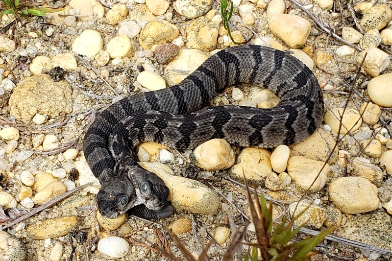 Dos empleados dede Herpetological Associates of Burlington County, vieron al reptil en un nido donde una serpiente de cascabel estaba dando a luz a fines del mes pasado.