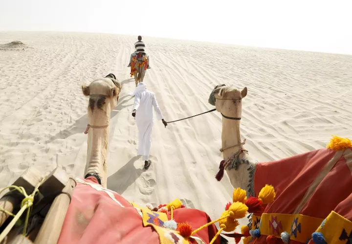 Nuestra recomendación: El desierto catarí es una experiencia para los sentidos. El atardecer logra que la arena blanca se transforme en rojiza.