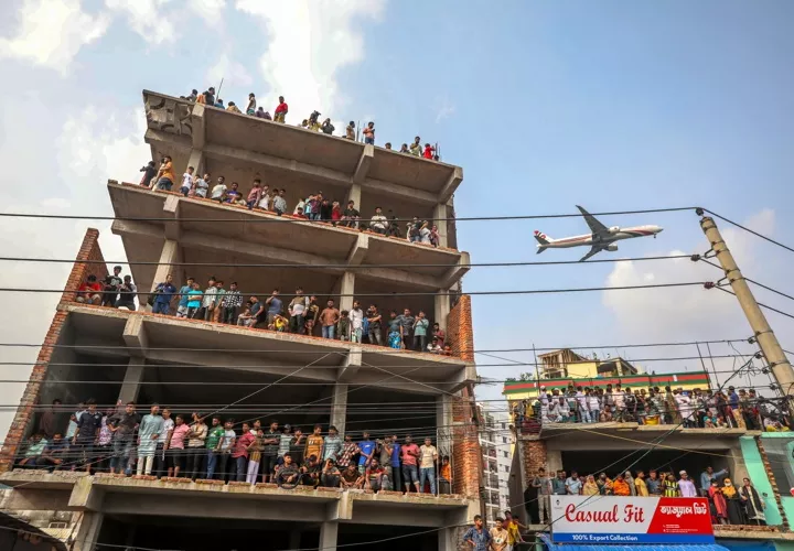 Se detalla que los hechos se registraron cuando el avión F-7 BGI, de fabricación china, y aeronave de entrenamiento de la Fuerza Aérea, se estrelló contra el campus de la Escuela y Colegio Milestone, en el barrio de Uttara, mientras los estudiantes asistían a clases.