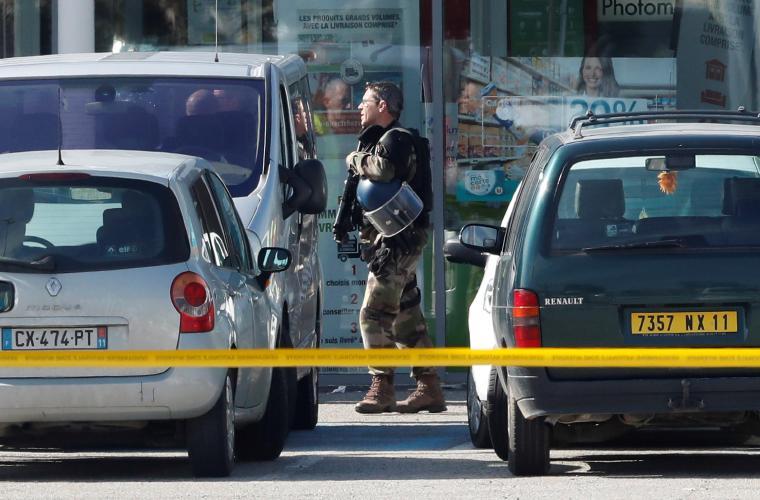 El terrorista fue entonces al vecino pueblo de Trèbes, a 8 kilómetros de distancia, donde penetró al grito de "Alá es grande" en un supermercado situado en una zona residencial, mató a dos personas y se atrincheró en el interior con un grupo de rehenes.