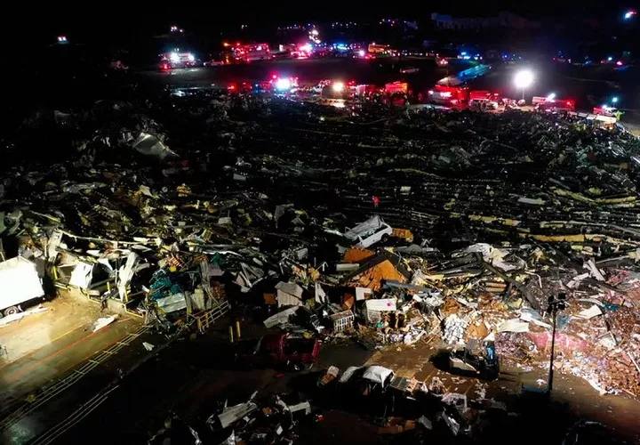 Lo peor ocurrió en la ciudad de Mayfield, de unos 10.000 habitantes, donde un tornado derrumbó una fábrica en la que trabajaban en ese momento más de un centenar de personas, provocando una cifra "masiva" de víctimas.