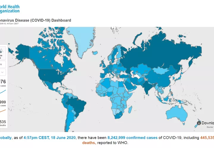 Los casos globales de COVID-19 alcanzaron hoy los 8,24 millones, casi la mitad en América, el continente más afectado, que hoy superó la barrera de los 4 millones de contagios según las cifras de la Organización Mundial de la Salud (OMS).
